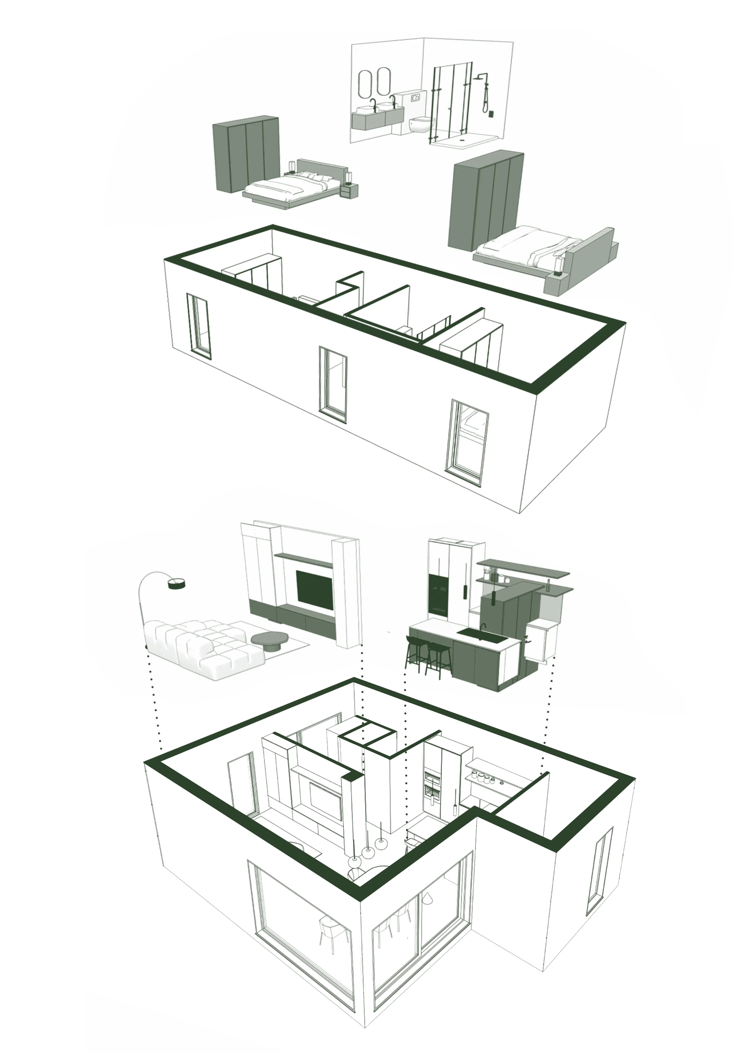 Deze compacte woning combineert ruimte, licht en comfort in een moderne én praktische indeling. Met twee slaapkamers, een badkamer en twee aparte toiletten is ze perfect afgestemd op het dagelijkse gezinsleven. De ruime leefruimte met open keuken vormt het kloppend hart van de woning. Dankzij de kamerhoge ramen en deuren valt het daglicht rijkelijk binnen en sta je in direct contact met je tuin.